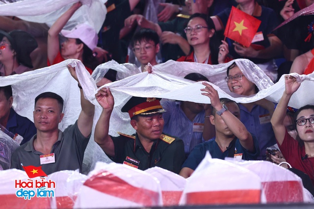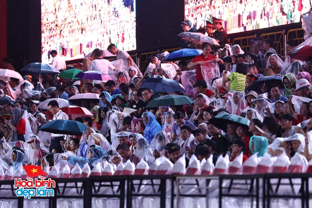 Khi trời đổ mưa, nhiều người vội vã tìm chỗ trú dưới mái hiên, quán cà phê ven đường. Thế nhưng, vẫn còn rất đông người kiên nhẫn đứng lại dưới mưa, không nỡ rời đi vì không muốn bỏ lỡ khoảnh khắc thiêng liêng này.