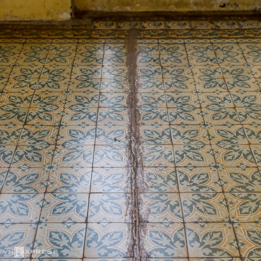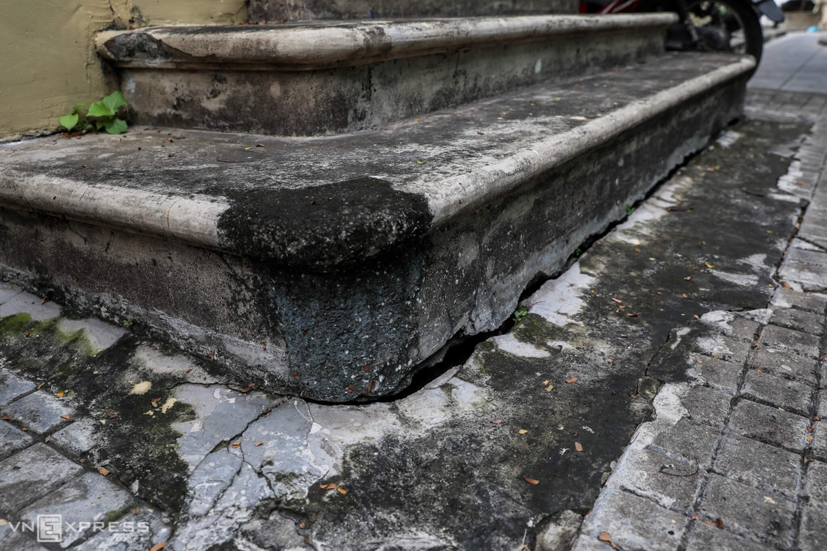 Bậc tam cấp lối vào bảo tàng bị lún, hở nhiều đoạn thành vệt dài.