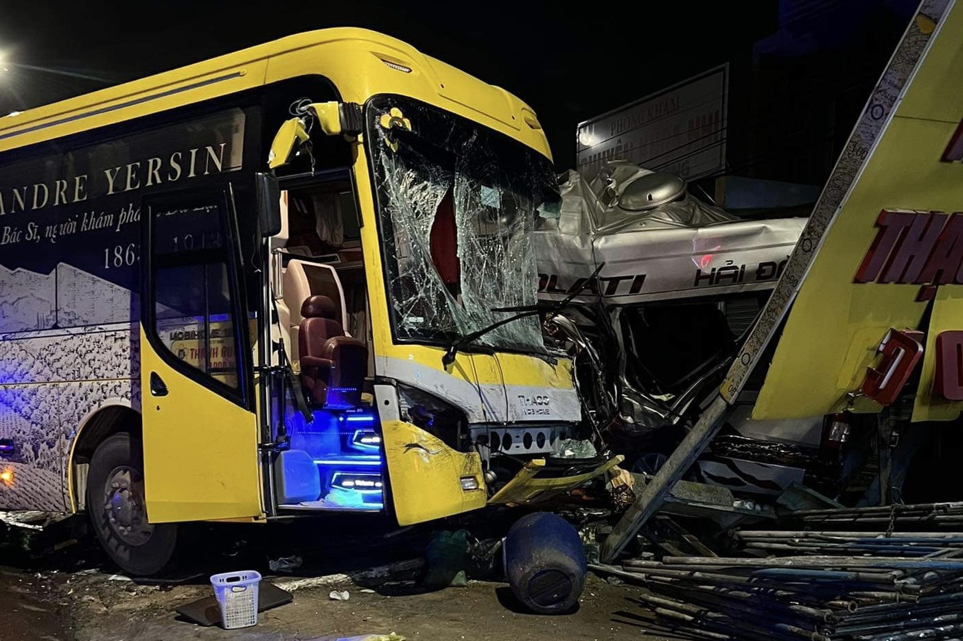 Ghi nhận tại hiện trường, xe 16 chỗ biến dạng hoàn toàn, nhiều tấm kính bị vỡ tung tóe, túi khí phía trước bung toàn bộ; phần đầu xe giường nằm cũng bị hư hỏng nặng. Rất đông người dân có mặt tại hiện trường để theo dõi vụ việc và hỗ trợ đưa người mắc kẹt trong xe ra ngoài.