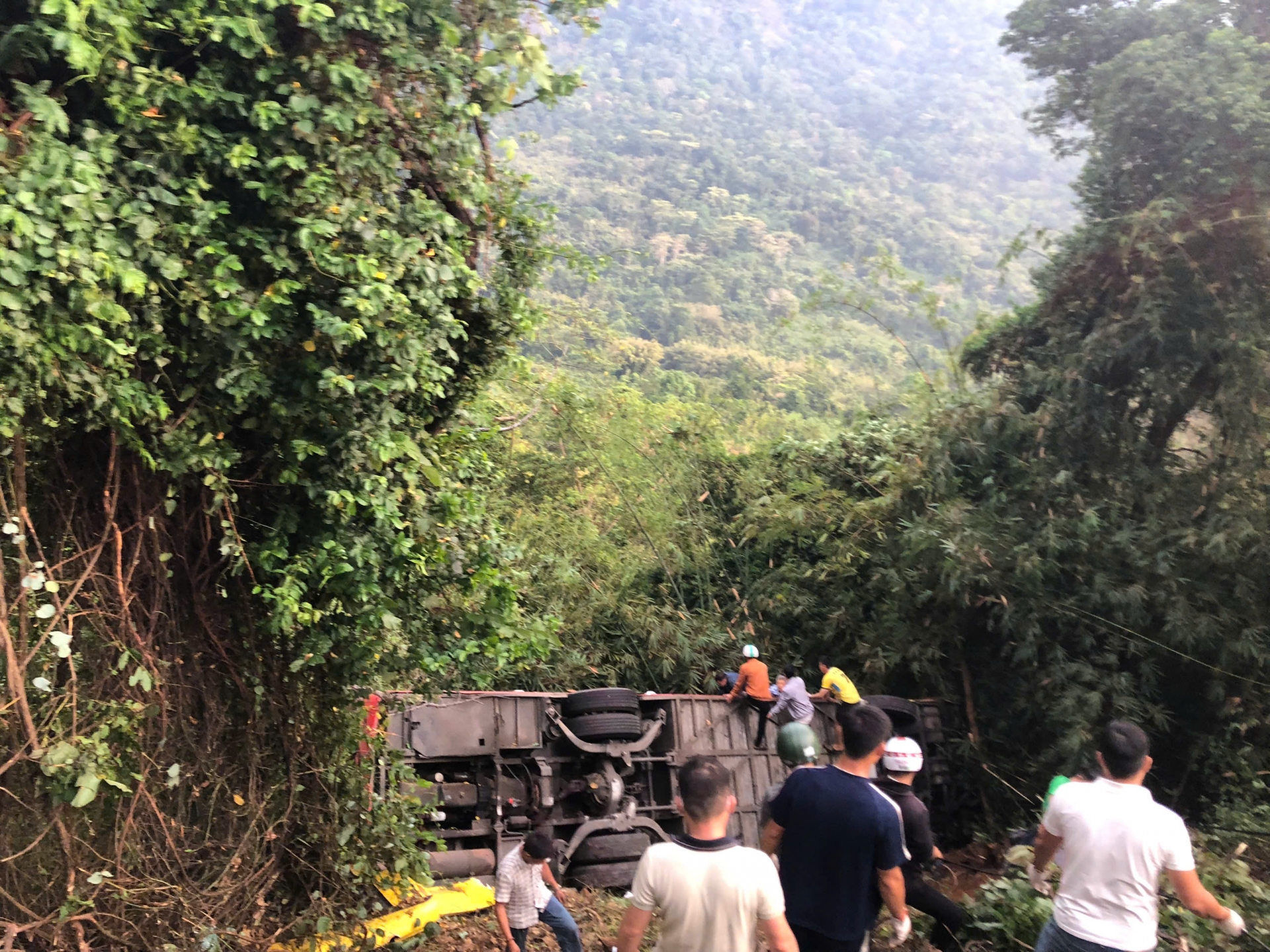Chiếc xe khách 52 chỗ ngồi chở theo nhiều hành khách lao xuống vực sâu hơn 20 mét trên đèo Bảo Lộc, làm một người tử vong, ít nhất 30 người bị thương.