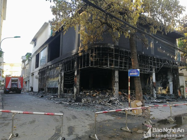 Đám cháy xảy ra lúc rạng sáng đã thiêu rụi toàn bộ căn nhà 3 tầng cũng là phòng trà ca nhạc khiến 6 người tử vong.