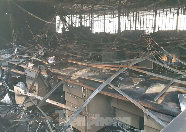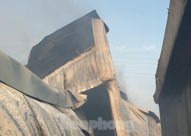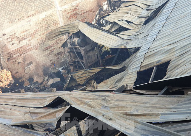 Khu vực nhà kho của hai công ty ở xã Bà Điểm, huyện Hóc Môn, TPHCM tan hoang, mái tôn đổ sụp, tài sản bên trong bị thiêu rụi sau vụ cháy kinh hoàng xảy ra vào tối 26/1 .