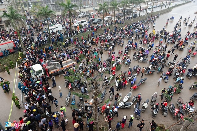 Hàng trăm người dân có mặt tại hiện trường. Ảnh: Lê Hiếu. |