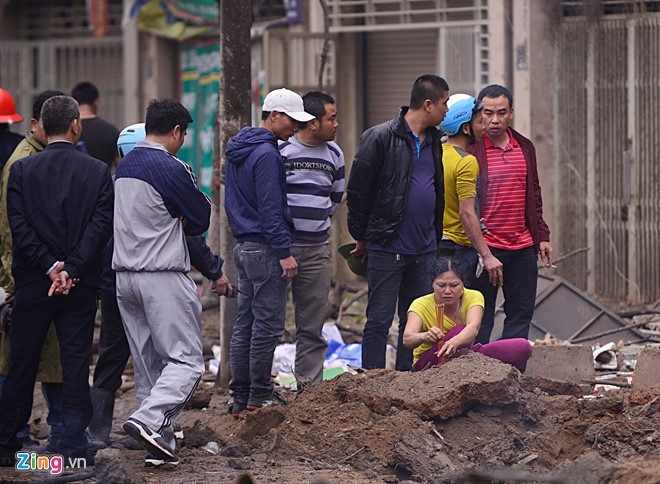 Trên vỉa hè trước cửa ngôi nhà số 40, xuất hiện một hố lớn, đường kính hơn 2 m. 15h30, lực lượng cảnh sát PCCC đã tới hiện trường tiến hành cứu các nạn nhân và tìm kiếm người bị nạn. |