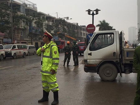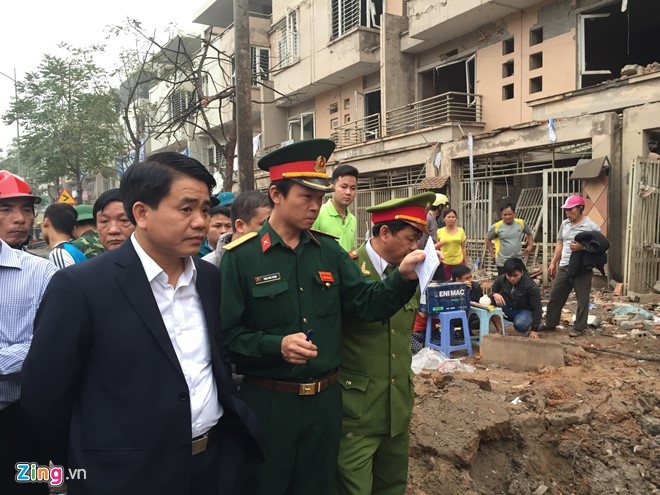 Lực lượng chức năng đã phong tỏa hiện trường vụ nổ. Hay tin, ông Nguyễn Đức Chung - Chủ tịch UBND TP Hà Nội lập tức lên đường tới hiện trường. |