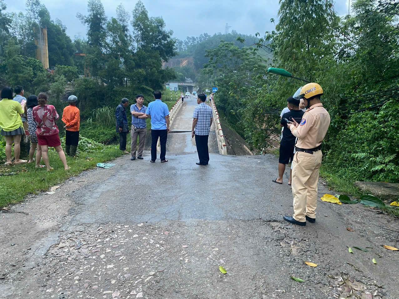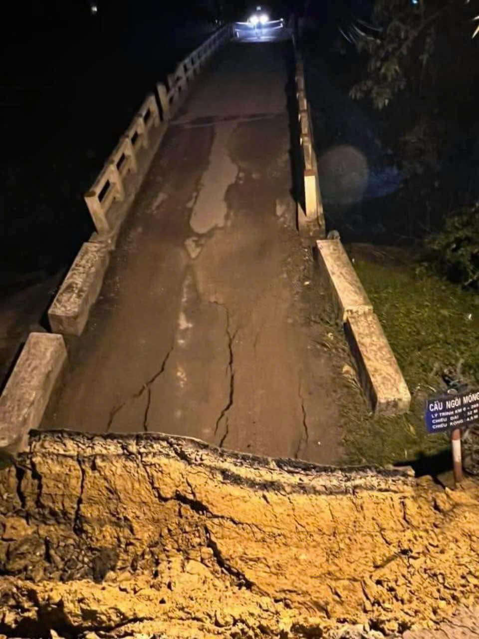 Rạng sáng 19/9, cầu Ngòi Móng (km 0+250) trên đường tỉnh 445, phường Kỳ Sơn đi xã Hợp Thành (thành phố Hòa Bình) đã bị lún, đến 1h10’ thì bị sập phần đầu cầu.