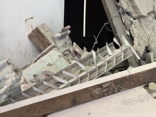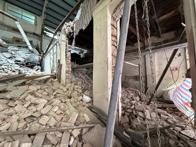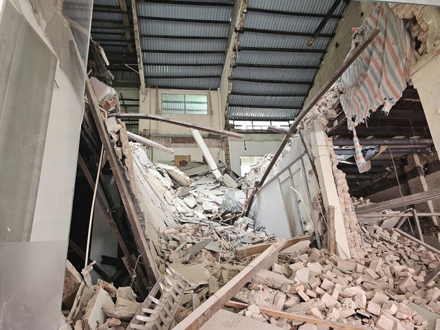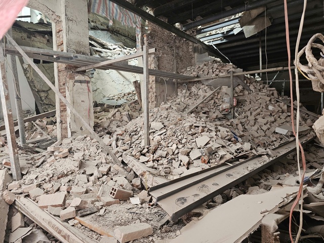 Toàn bộ sàn bê tông tầng 1 bị đổ sập, tạo ra tiếng động rung lắc lớn, khói bụi mù mịt, vụ việc đã khiến 1 người bị thương phải nhập viện cấp cứu.