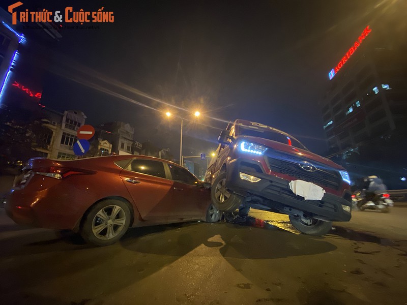 Một vụ tai nạn kinh hoàng đã xảy ra trên đường phố Hà Nội giữa 2 xe ô tô. Hiện trường vụ tai nạn cho thấy một xe đi chuyển với tốc độ rất cao trước khi va chạm.