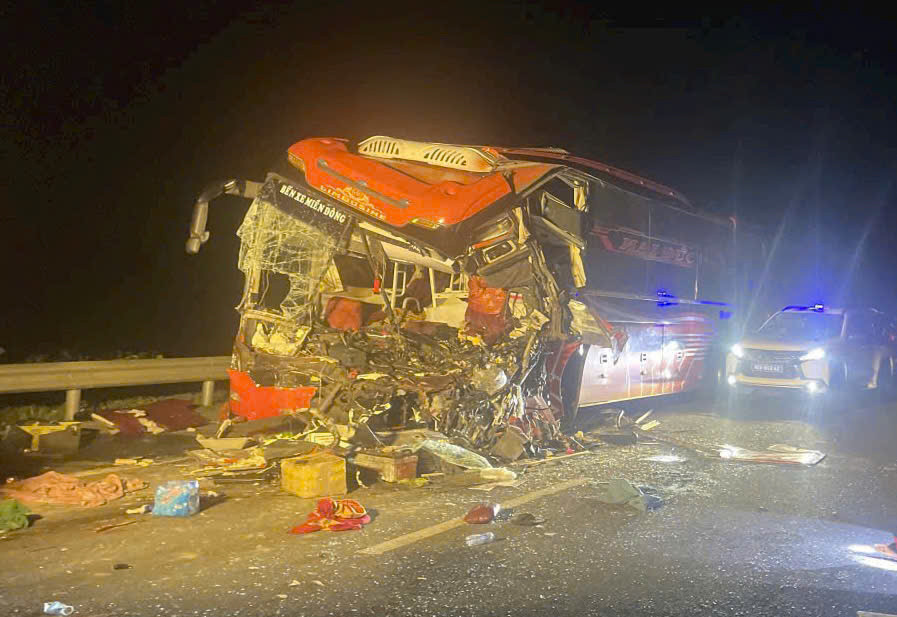 Vụ tai nạn nghiêm trọng giữa xe khách và xe đầu kéo xảy ra trên tuyến cao tốc Đà Nẵng – Quảng Ngãi khiến tài xế và phụ xe khách tử vong tại chỗ, nhiều người khác bị thương.