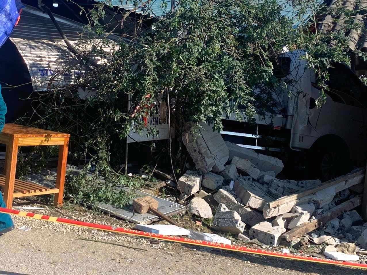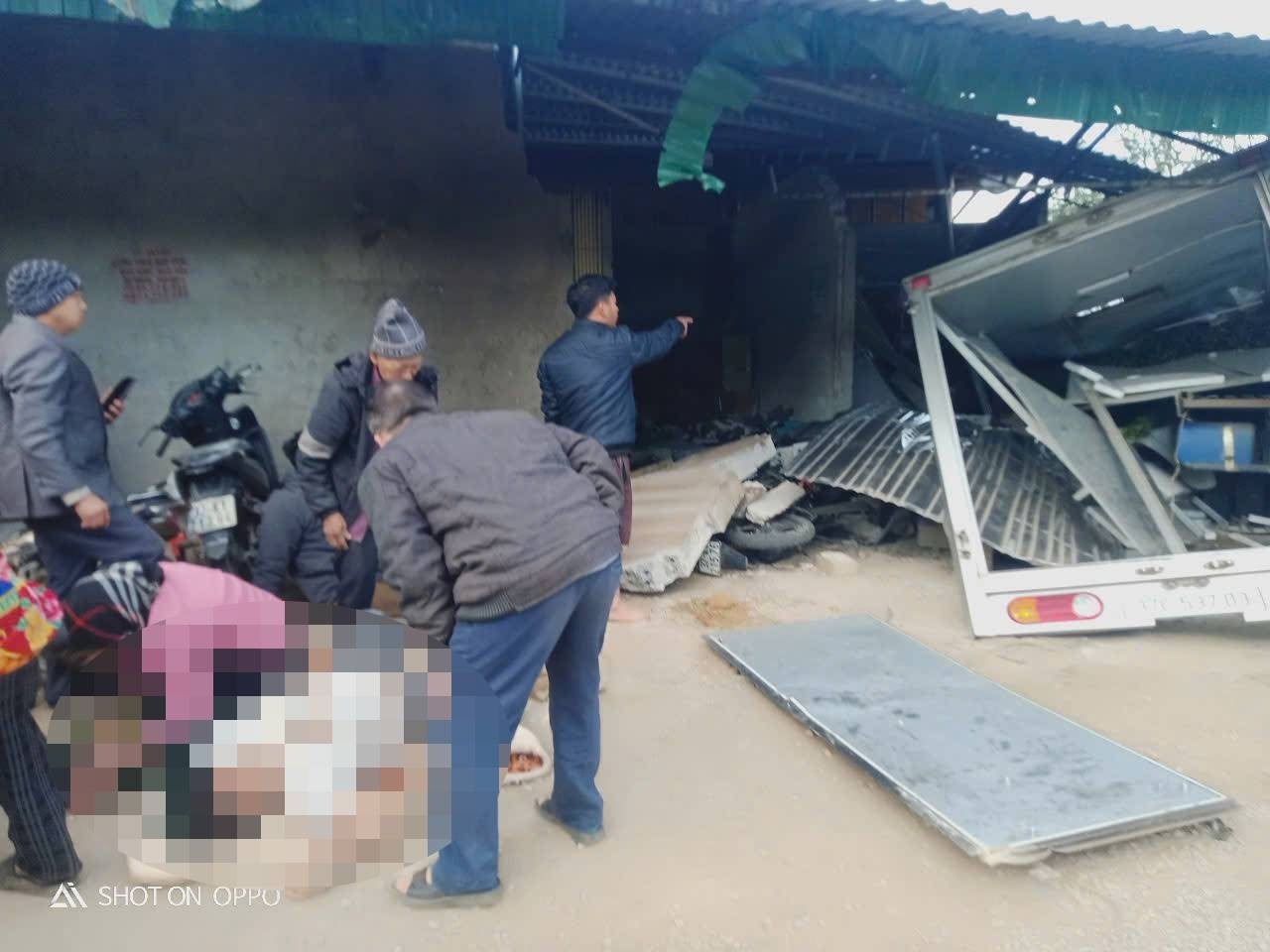 Hiện trường vụ tai nạn cho thấy, một phần căn nhà là tiệm tạp hóa bị xe tải tông sập, hư hỏng. Nhiều bức tường đổ sập đè lên người các nạn nhân.