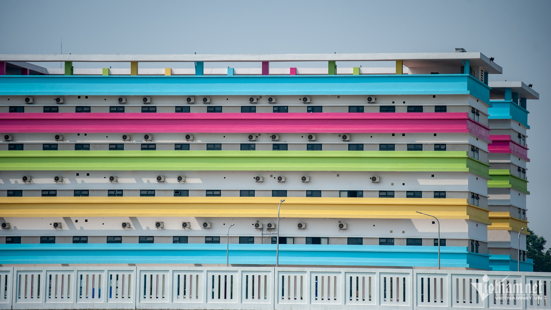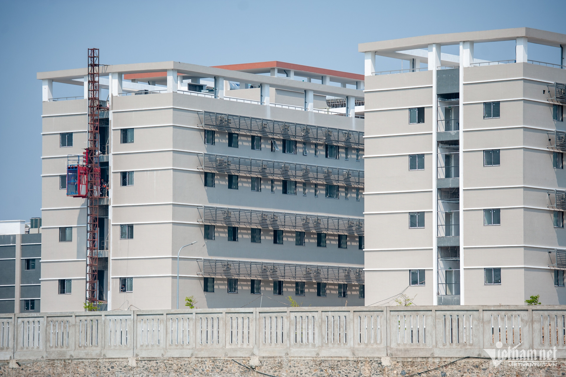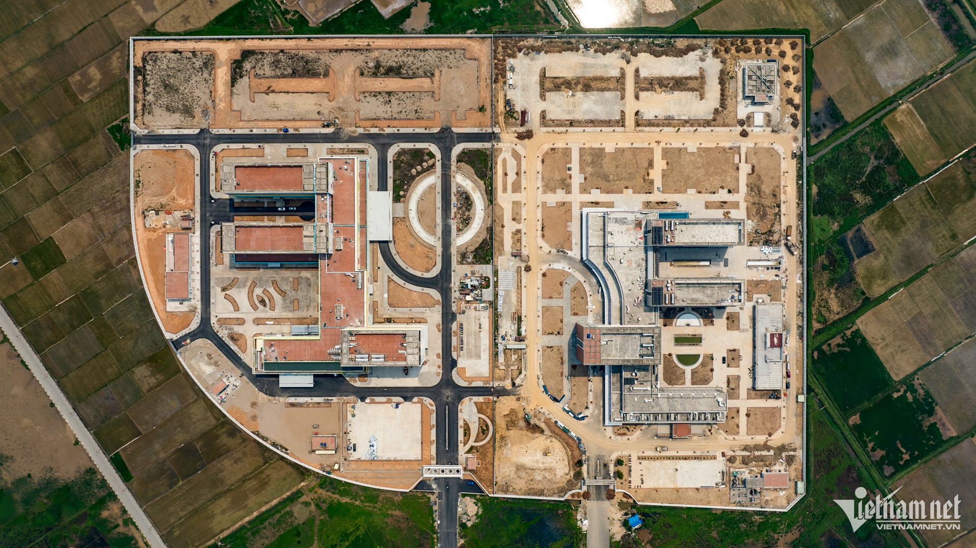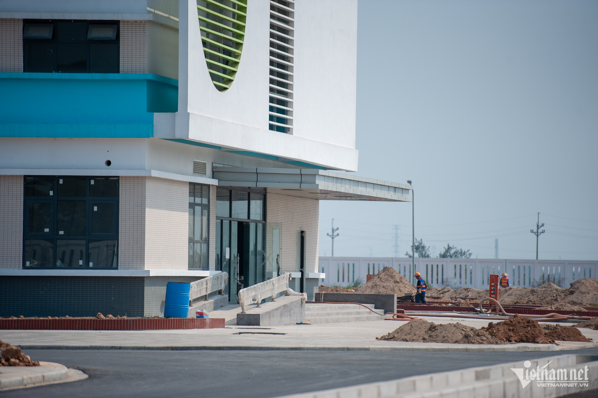 Thời điểm giữa tháng 3/2025, các tòa nhà đang được hoàn thiện các hạng mục cuối. Các lực lượng đang triển khai máy móc thi công cảnh quan khuôn viên.