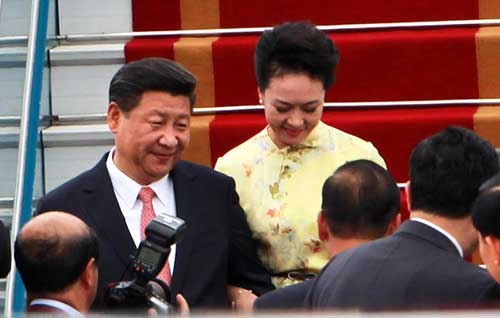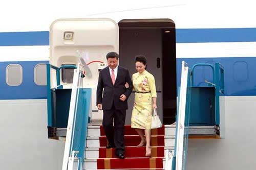 Hình ảnh Chủ tịch Tập Cận Bình và phu nhân khi đến sân bay Nội Bài, Hà Nội trưa nay: