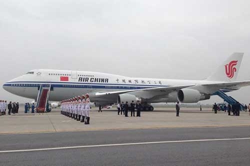 Trưa nay, đúng 11h45 phút, chuyên cơ riêng Boeing 747-400 chở Chủ tịch TQ Tập Cận Bình và phu nhân Bành Lệ Viện đã hạ cánh xuống sân bay Nội Bài.