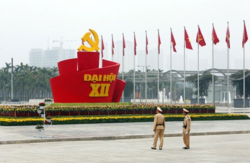 Trung tâm hội nghị quốc gia Mỹ Đình nhộn nhịp trong ngày làm việc đầu tiên của Đại hội Đảng 12, khi Đại hội họp phiên trù bị hôm nay.