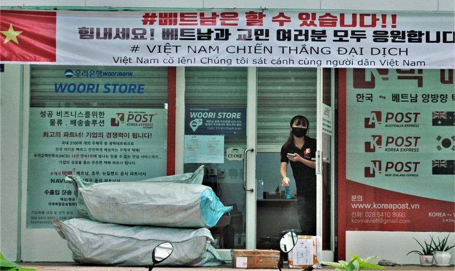 Khu đô thị Phú Mỹ Hưng, TPHCM, nơi có số lượng lớn người nước ngoài sinh sống và làm việc đang thực hiện giãn cách xã hội theo những tiêu chuẩn khắt khe nhất.