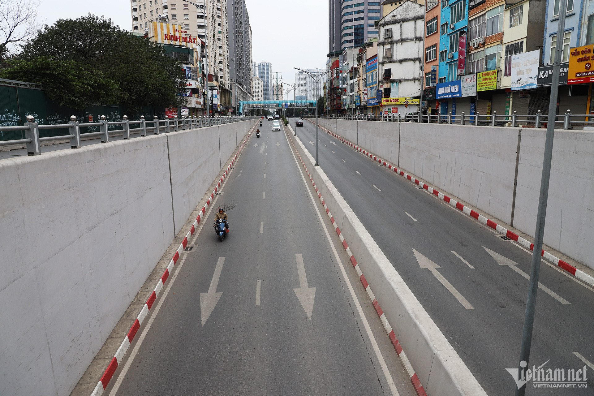 Đường phố Hà Nội vào chiều 30 Tết vắng vẻ khác lạ so với ngày thường, không còn cảnh hàng dài phương tiện ùn ứ hay xe máy phải len lỏi giữa hàng ô tô.