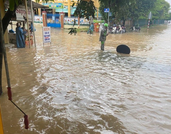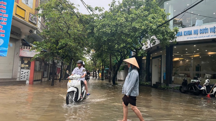 Mưa lớn trong đêm 10 và rạng sáng 11-6 trên diện rộng đã làm cho nhiều đường phố ở các quận Thuận Hoá, Phú Xuân, TP Huế bị ngập. Trong đó, tại một số đường thấp trũng như Dương Văn An, Đặng Ngung, Mai Thúc Loan, Lê Thánh Tôn… nước ngập sâu khiến đi lại khó khăn.