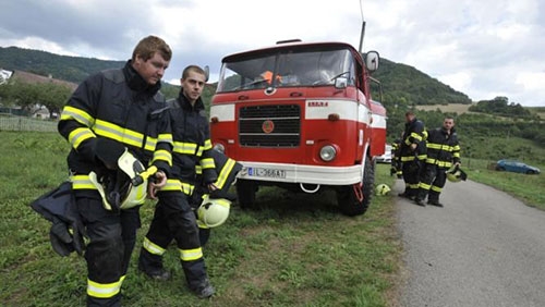 Lính cứu hỏa làm việc tại hiện trường vụ tai nạn máy bay. (Ảnh: Radovan Stoklasa / TASR qua AP). |