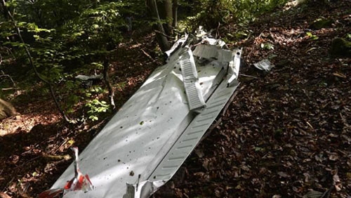 Một phần của chiếc máy bay bị rơi được tìm thấy gần làng Cerveny Kamen, Slovakia. (Ảnh: Radovan Stoklasa / TASR qua AP). |