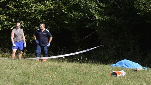 Các nhân viên cứu hộ đứng cạnh thi thể của một người nhảy dù đã thiệt mạng trong một tai nạn máy bay gần làng Cerveny Kamen, Slovakia. Ngày 20/8, 2 chiếc máy bay chở hàng chục người nhảy dù đã va chạm nhau trên không, khiến 7 người thiệt mạng, 31 người khác đã nhảy dù khỏi máy bay và tiếp đất an toàn. (Ảnh: Radovan Stoklasa / TASR qua AP) |