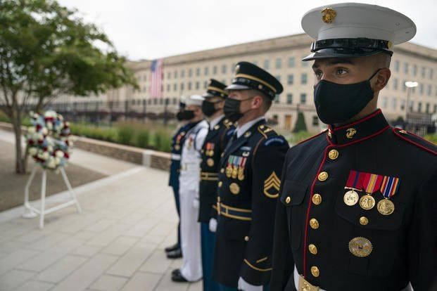 Tại Lầu Năm Góc, Bộ trưởng Quốc phòng Mark Esper và Tướng Mark Milley, Chủ tịch Hội đồng Tham mưu trưởng liên quân Mỹ đã chủ trì buổi lễ tưởng niệm sự cố 11/9. Tòa nhà đã để cờ rủ để tưởng nhớ 184 nạn nhân đã thiệt mạng khi bọn khủng bố lao máy bay vào nơi này năm 2001.