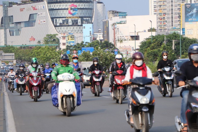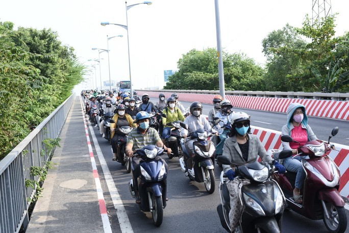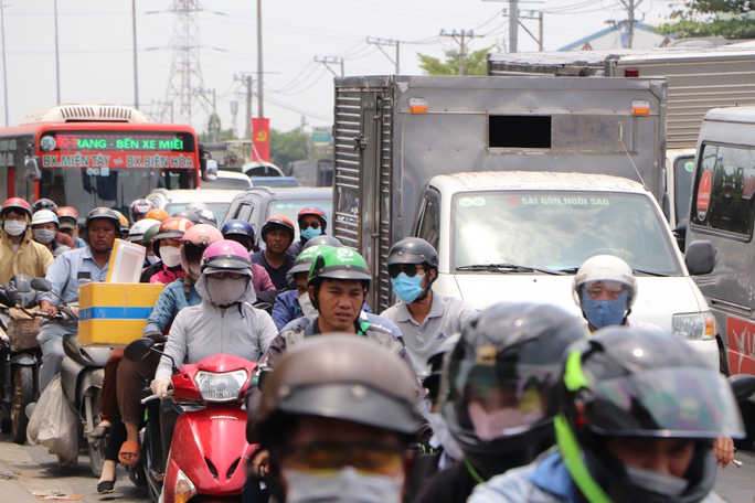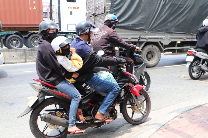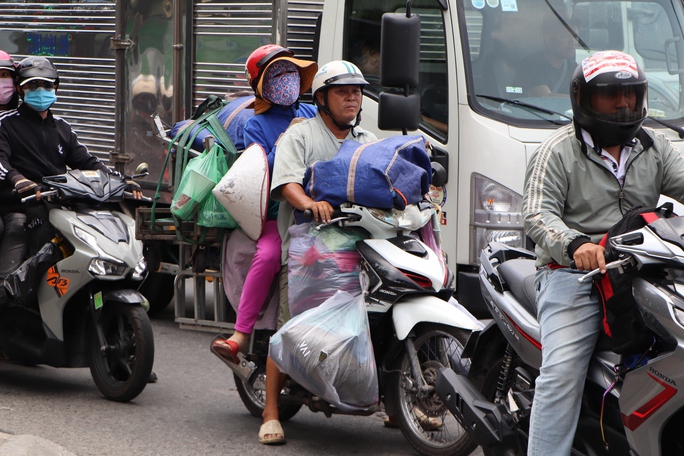 Ngày 28-4, ngày làm việc trước kỳ nghỉ lễ. Từ buổi trưa, ghi nhận tại nhiều cửa ngõ TP HCM, nhiều gia đình bắt đầu di chuyển bằng xe máy về quê với đồ đạc lỉnh kỉnh.
