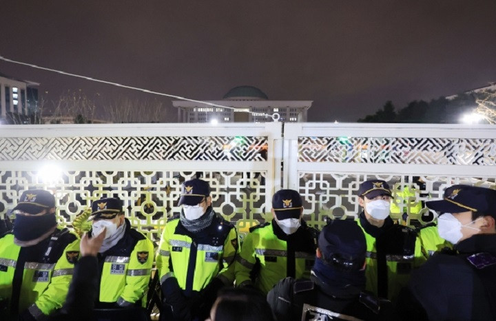 Theo Yonhap, trong đêm ngày 3/12, rất nhiều người dân đã tụ tập xung quanh tòa nhà Quốc hội Hàn Quốc sau khi tình trạng thiết quân luật được ban bố. Lực lượng an ninh đang tăng cường bảo vệ tòa nhà để ngăn chặn những người muốn xông vào bên trong.