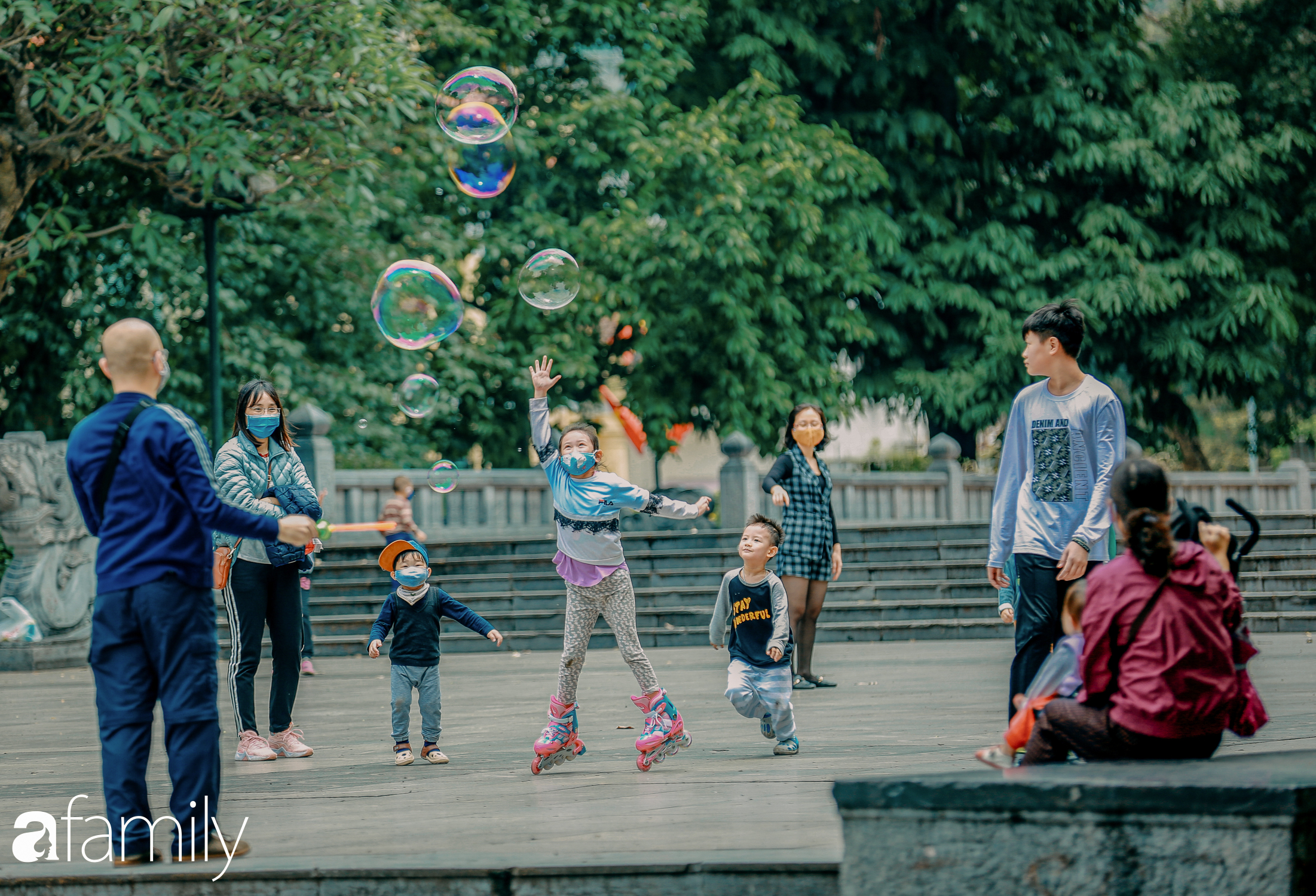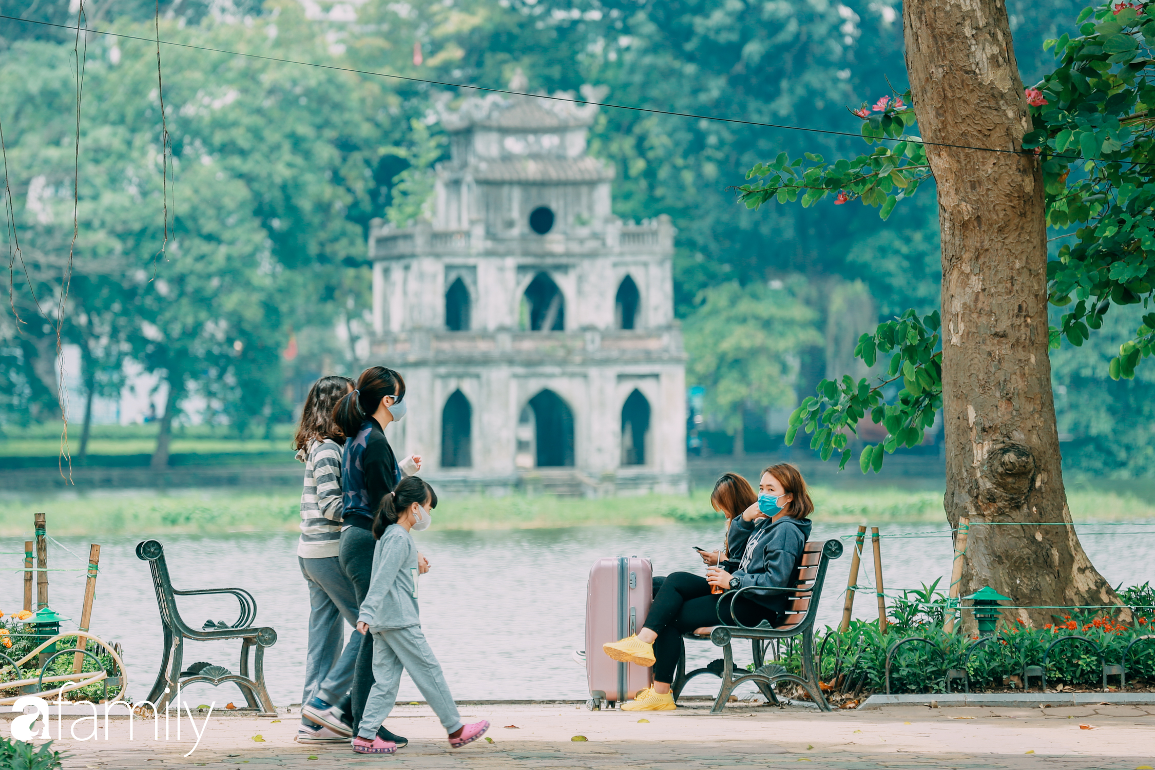 Hà Nội ngày cuối tuần đầu tiên sau thời kỳ giãn cách xã hội, người dân vẫn chưa thể thưởng thức sự náo nhiệt của những chương trình văn hóa trên phố đi bộ Hà Nội do lo ngại nguy cơ từ dịch Covid-19. Thế nhưng tại khu vực quanh bờ hồ Hoàn Kiếm lại có một vẻ đẹp khác, đó là những đợt nắng bao trùm lên không gian yên bình, dần xua tan thời tiết lạnh lẽo, âm u.