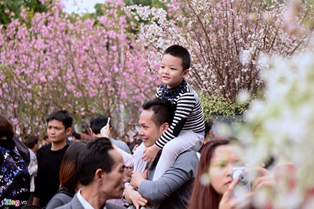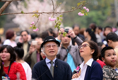 | Như thường lệ, mỗi dịp lễ hội hoa anh đào tổ chức, cảnh đông đúc, chen lấn lại diễn ra. Khách tham quan không chỉ có giới trẻ mà còn có cả người cao tuổi. |