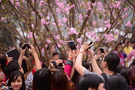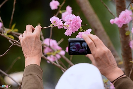 | Khách tham quan thi nhau chụp hình loài hoa nổi tiếng thế giới của đất nước mặt trời mọc. |