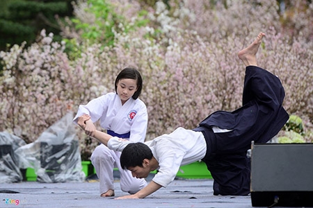 | Chương trình giao lưu văn hoá Việt - Nhật còn mang đến cho du khách những tiết mục biểu diễn đặc sắc như trình diễn võ thuật Aikido của các thành viên câu lạc bộ tại Hà Nội. |