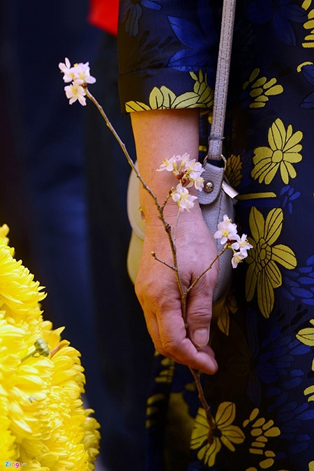 | Một vài người còn rút một vài cành hoa nhỏ đang được trưng bày để mang về. |