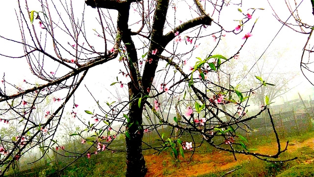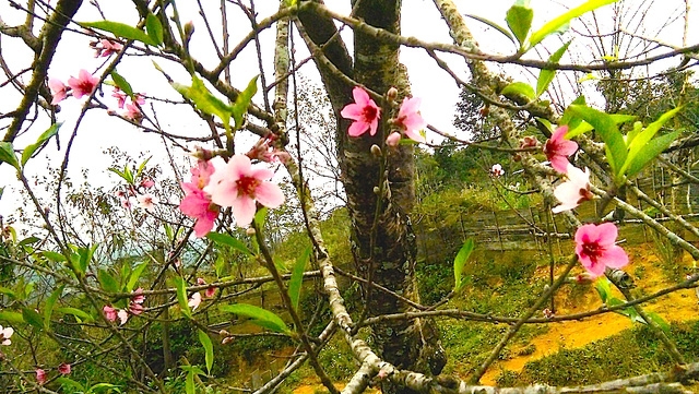 | Hoa đào nở sớm ở Pà Khốm. |