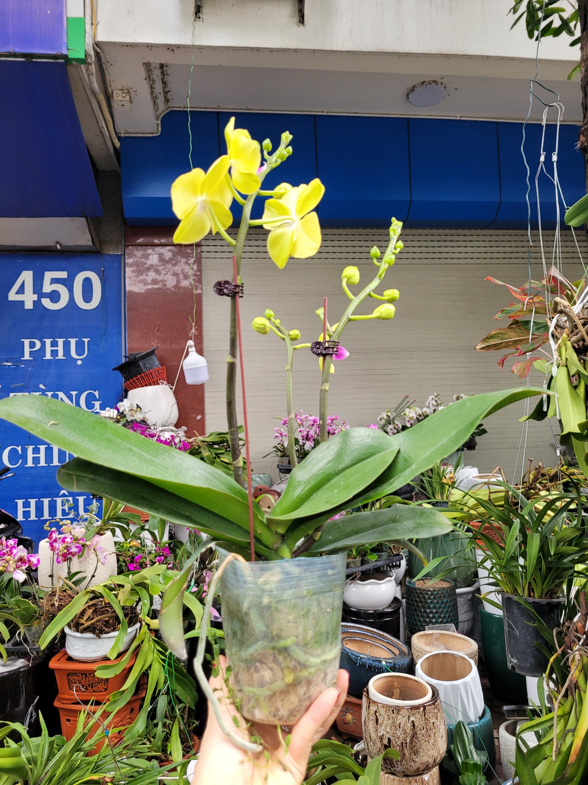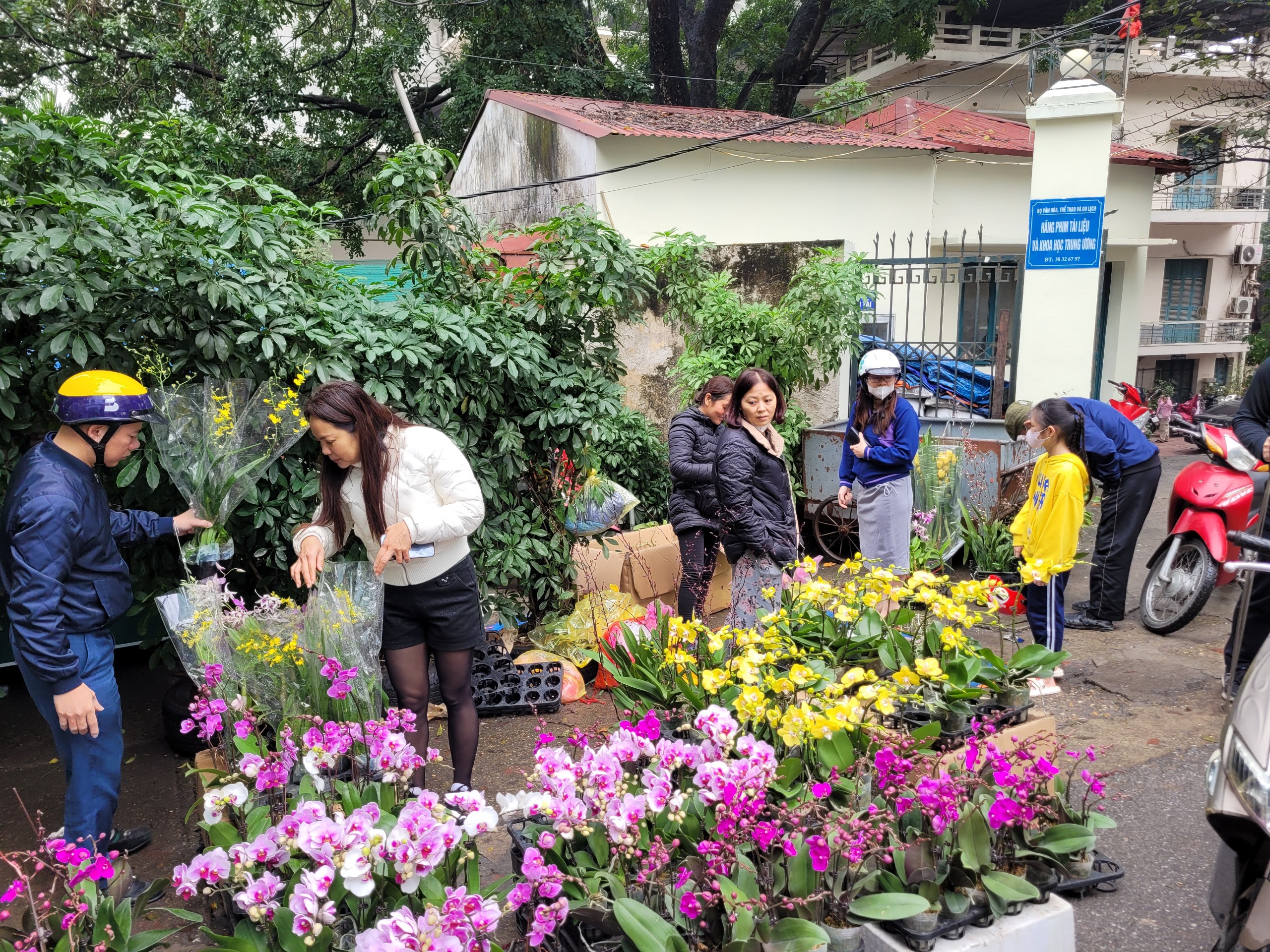 Đường Hoàng Hoa Thám được mệnh danh là phố cây cảnh của Thủ đô, nơi đây đang bày bán quanh năm các loại cây cảnh với nhiều mức giá bán khác nhau. Song, những ngày gần Tết Nguyên đán, mặt hàng hoa lan được người dân săn tìm nhiều nhất.