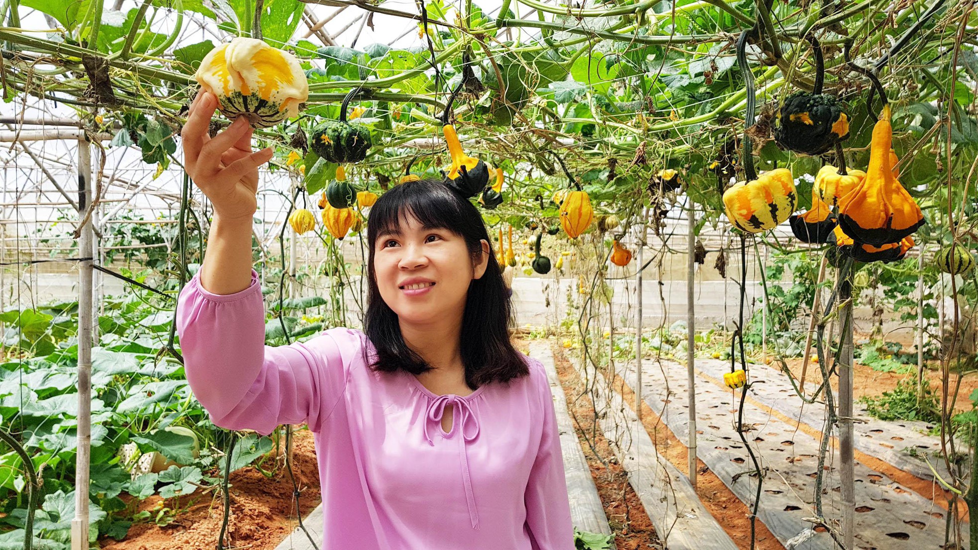 Các trang trại ở Đà Lạt cung cấp cho thị trường đủ loại bí ngô từ những quả tí hon nhỏ bằng nắm tay em bé đến loại quả khổng lồ nặng trên 1 tạ với nhiều hình dáng, màu sắc khác nhau; còn những nghệ nhân thì biến bí ngô thành những chiếc đèn lồng kỳ quái, ấn tượng.