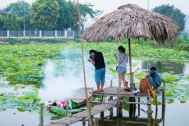 Tại các đầm sen quanh hồ Tây, hoa vẫn chưa nở rộ, nhưng đã có người đến chụp ảnh lưu lại khoảnh khắc đầu mùa. lượng hoa khá thưa thớt. Theo các chủ đầm sen tại hồ Tây, sen ở đây là loại sen hương, không giống với sen quỳ ở các nơi khác.