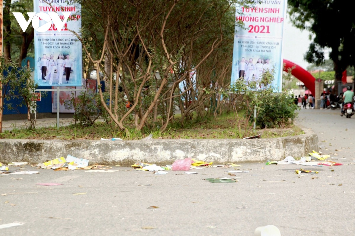 Sáng 11/4, tại ngày hội tư vấn tuyển sinh – hướng nghiệp diễn ra ở Hà Nội, xuất hiện tình trạng học sinh đến tham dự vô tư xả rác là bừa bãi ngay tại khuôn viên Trường Đại học Bách khoa Hà Nội.