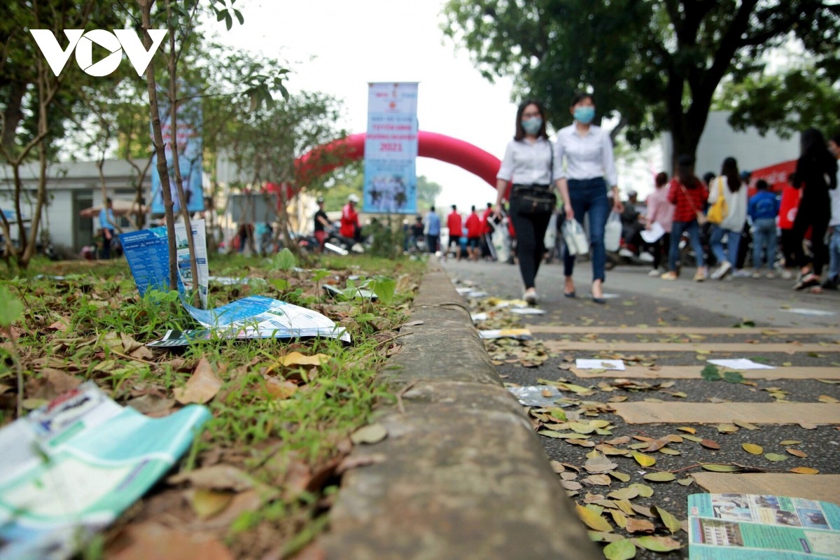 12/04/2021 17:23Học sinh vô tư xả rác trong ngày hội tư vấn tuyển sinh-hướng nghiệp