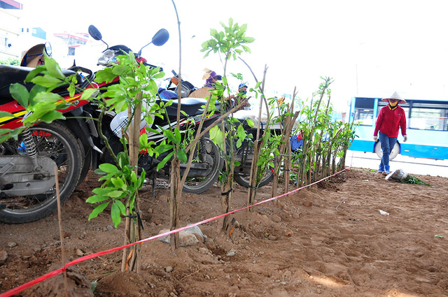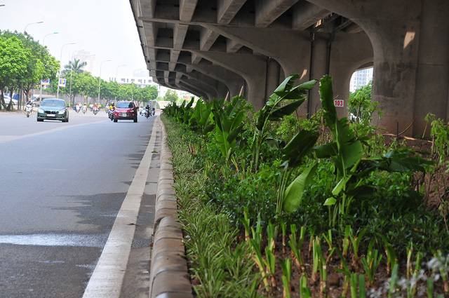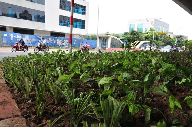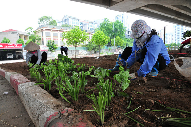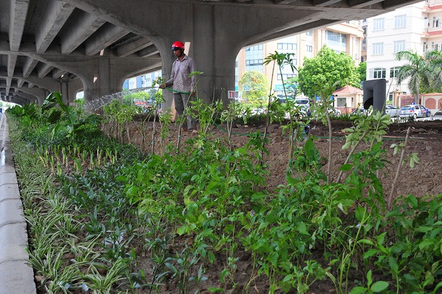 Sau hơn một năm bị bỏ hoang phế, dải phân cách trục vành đai 3 từ nút giao Mai Dịch - Phạm Hùng đến cầu Dậu đang được trồng nhiều loại cây xanh đô thị.