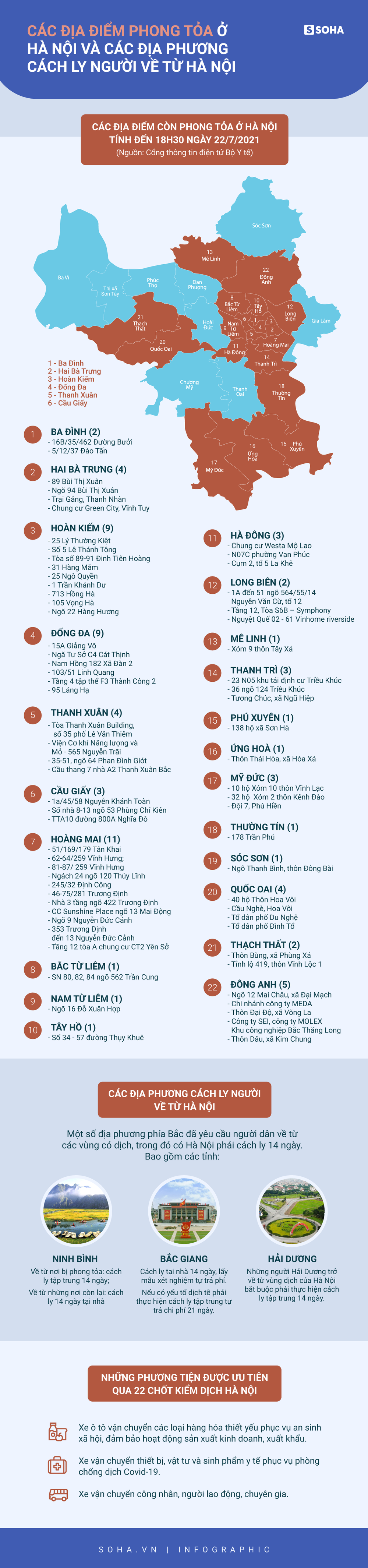 24/07/2021 03:07INFOGRAPHIC: Các địa điểm phong tỏa ở Hà Nội và địa phương cách ly người về từ Hà Nội