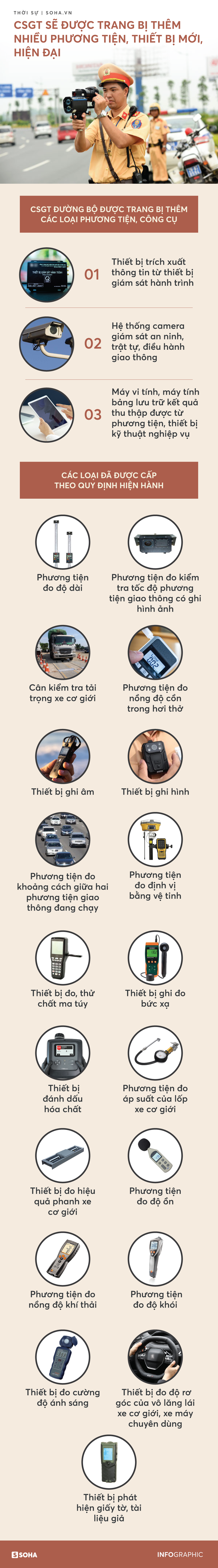 06/09/2021 15:21Infographic CSGT sẽ được trang bị thêm phương tiện, thiết bị nào để phát hiện vi phạm?