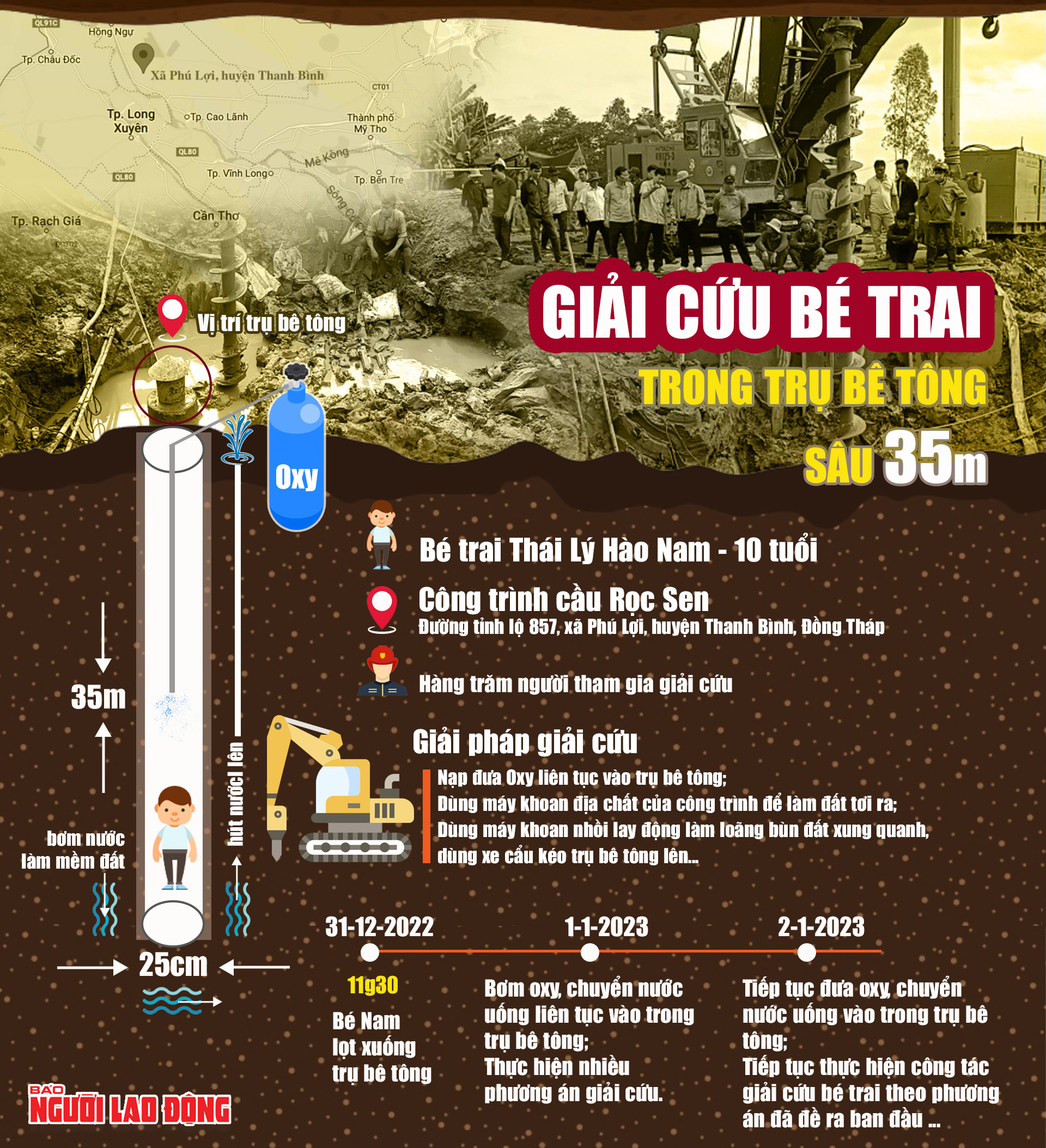 03/01/2023 03:30[Infographic] Toàn cảnh giải cứu bé trai lọt trụ bê tông sâu 35m ở Đồng Tháp