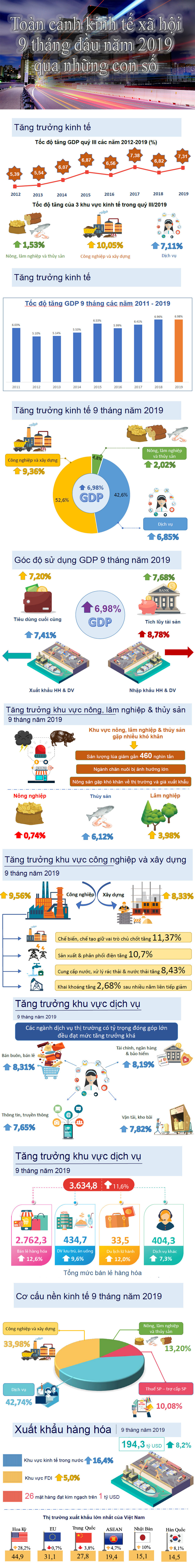 30/09/2019 16:55[Infographic] Toàn cảnh kinh tế xã hội 9 tháng đầu năm 2019 qua những con số