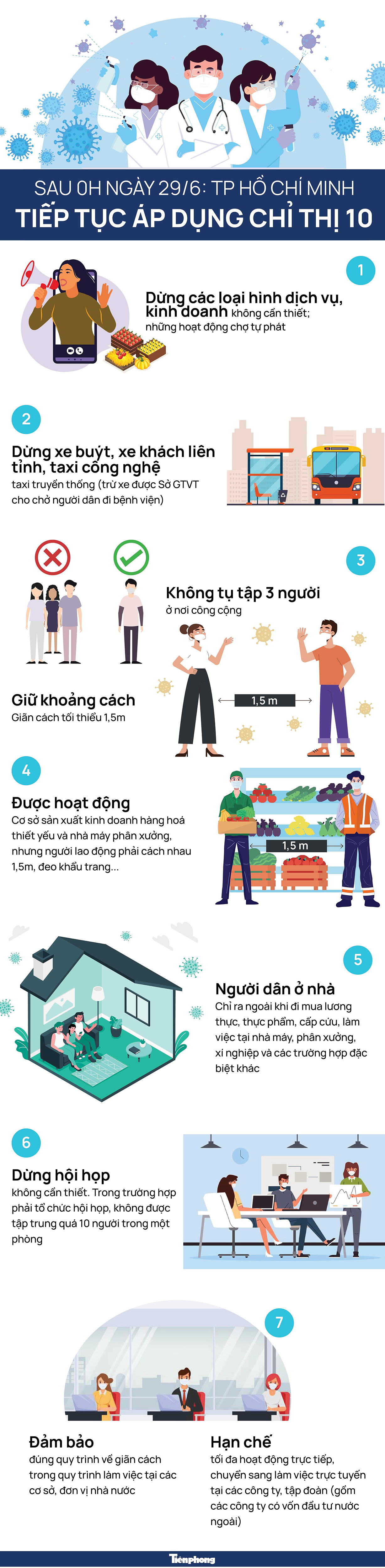 29/06/2021 22:06Infographic: TPHCM giãn cách xã hội theo Chỉ thị 10, người dân được làm những gì?