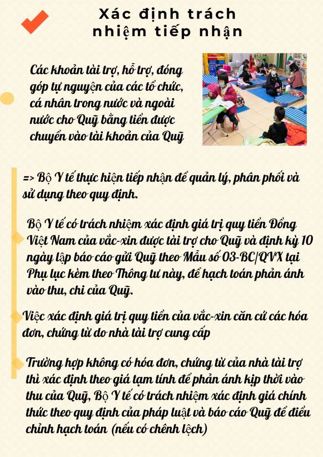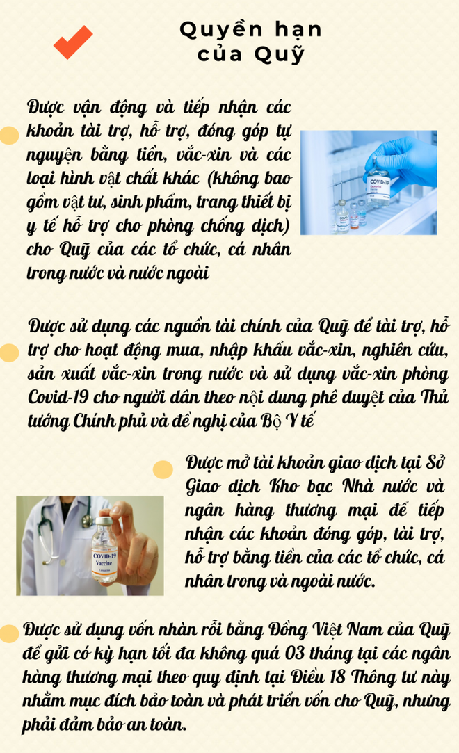 Theo thông tư hướng dẫn mới ban hành của Bộ Tài chính, Quỹ vắc xin phòng COVID-19 Việt Nam sẽ do Thủ tướng quyết định chi. Hàng tháng, hàng quý và hàng năm phải định kỳ công khai để mọi người dân được biết.