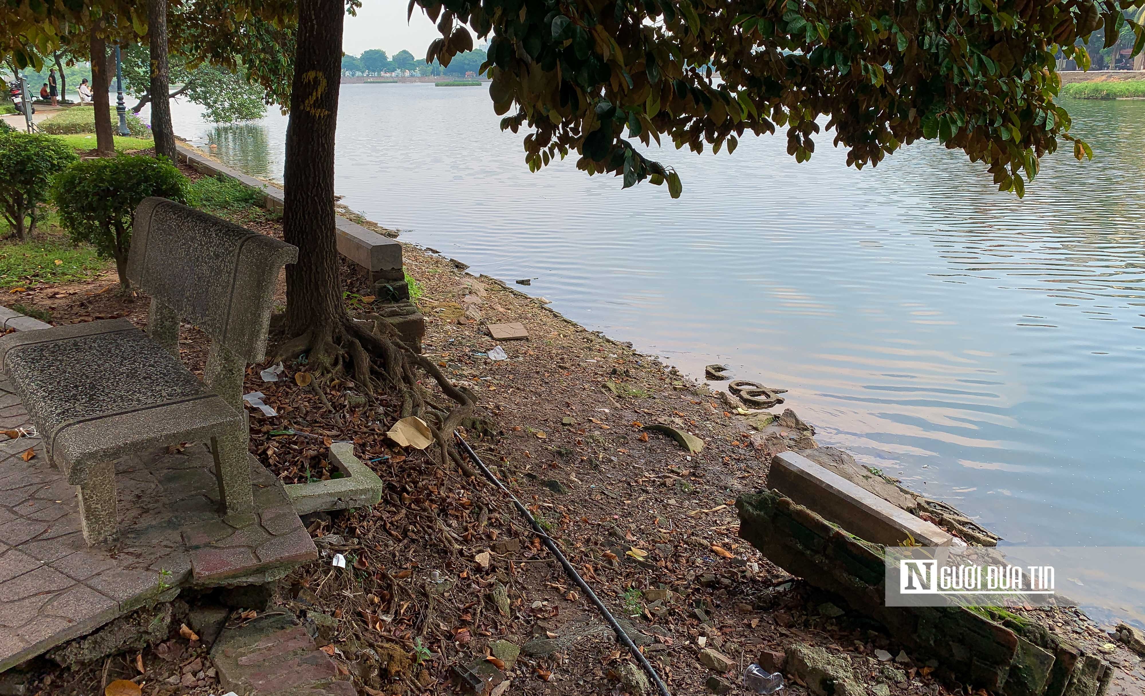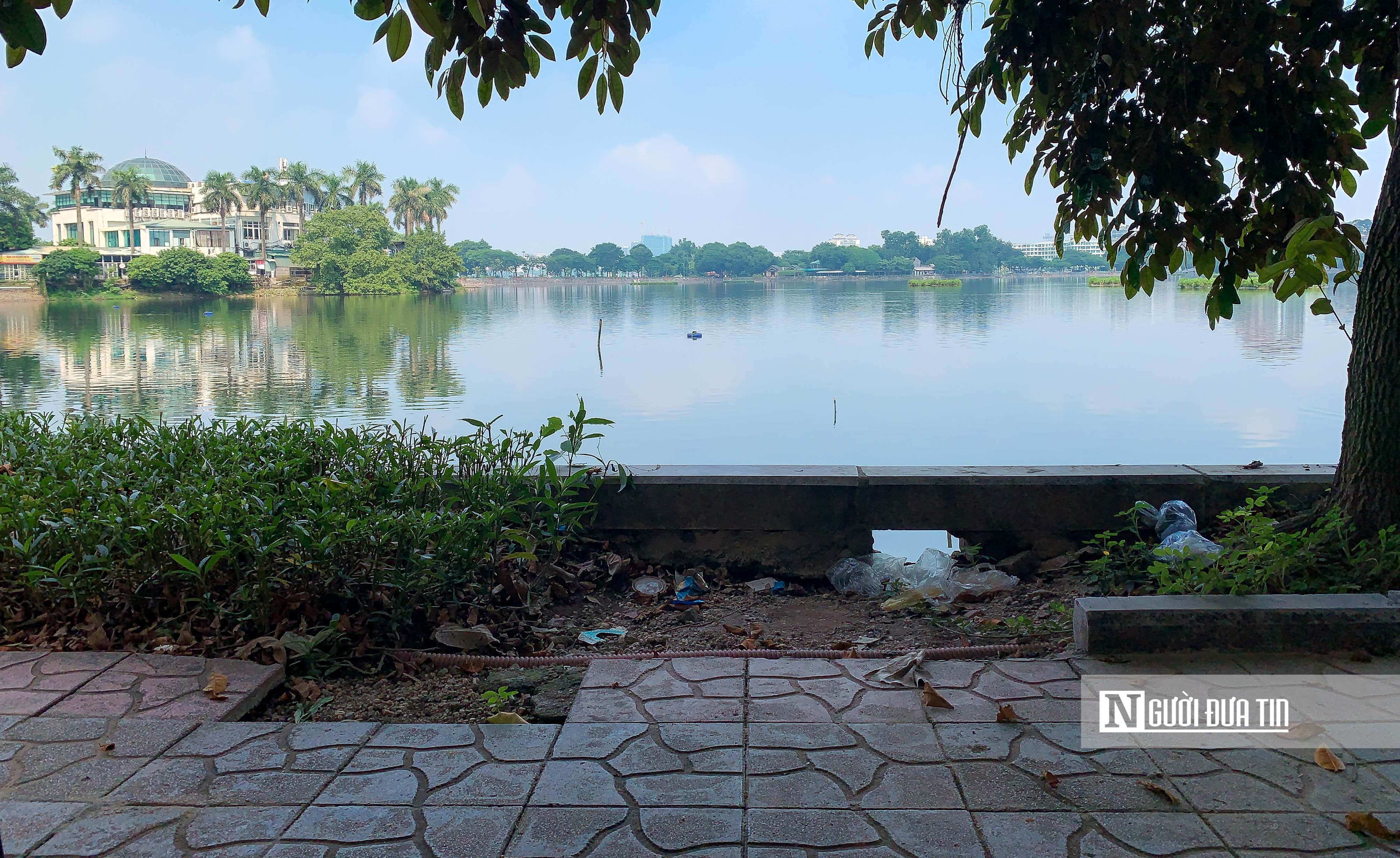 Một đoạn kè bờ hồ Trúc Bạch cũng bị sạt lở.