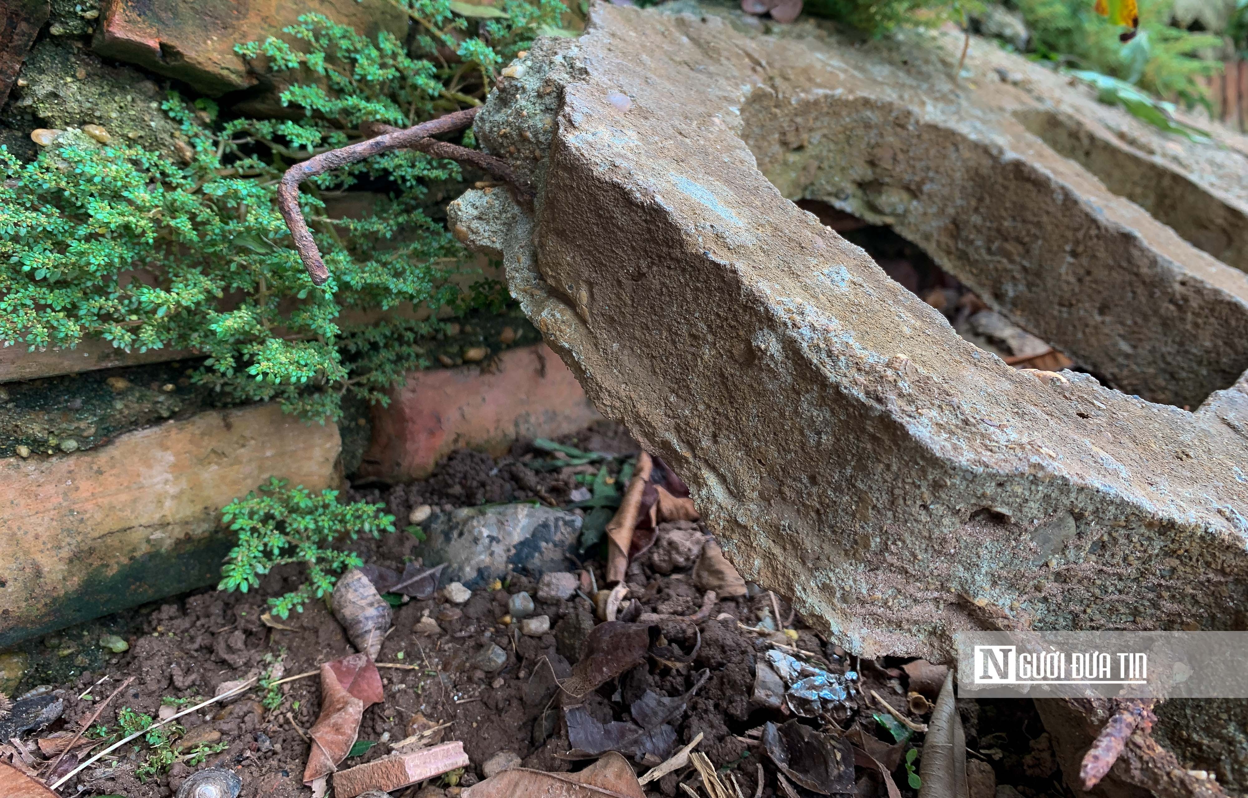 Gạch vỡ, đất cũng bị nước cuốn trôi đã tạo thành "hàm ếch" gây nguy hiểm cho người dân.