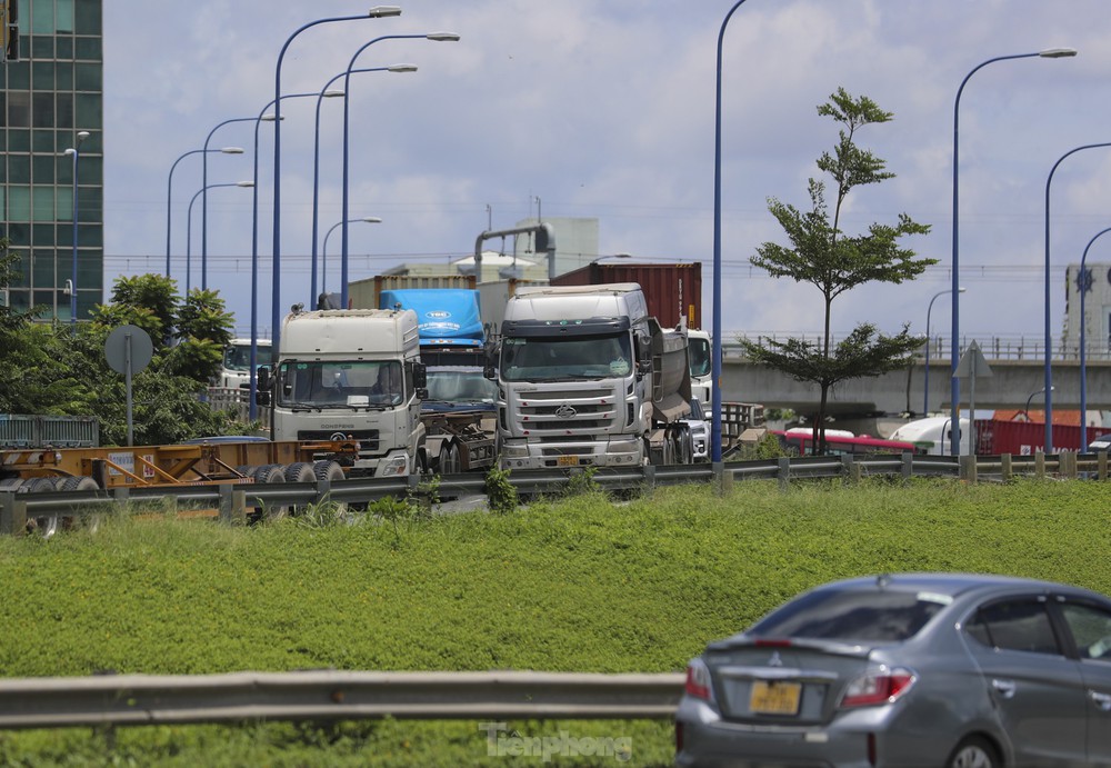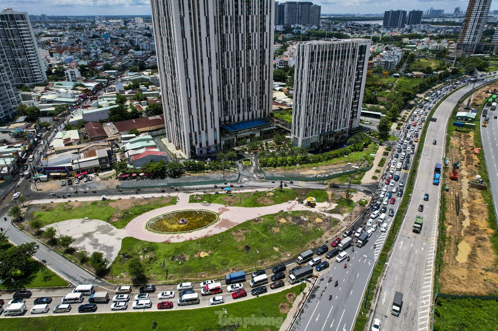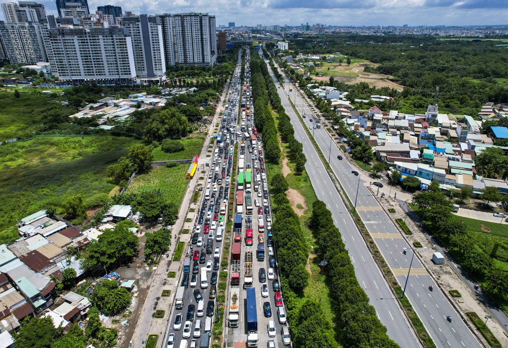 Từ đầu giờ sáng đến trưa nay 1/9, giao thông ở cửa ngõ phía Đông TPHCM đoạn từ đường Mai Chí Thọ đến khu vực nút giao An Phú vào cao tốc TPHCM - Long Thành ùn tắc cục bộ khiến hàng nghìn phương tiện nhích từng chút một.