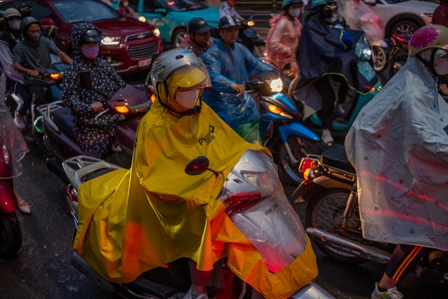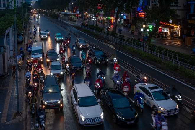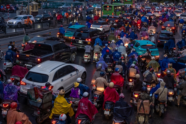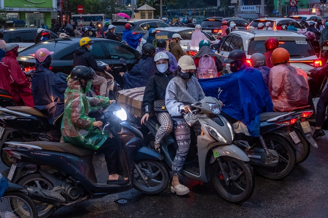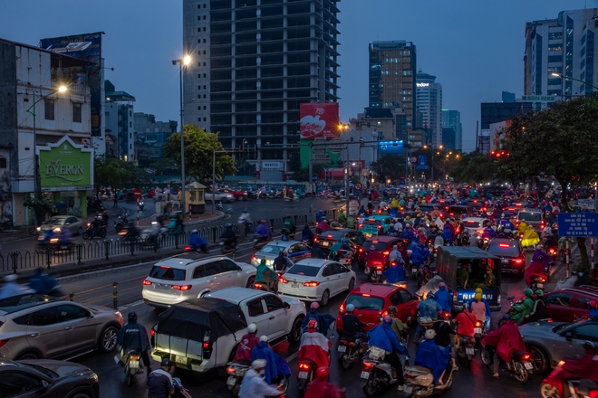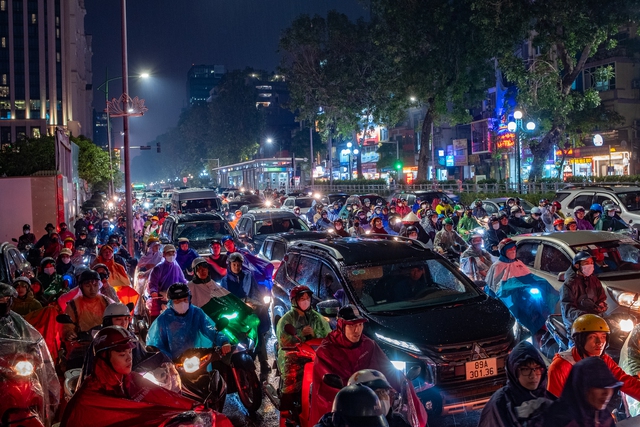 Thời tiết mưa đúng giờ tan tầm khiến nhiều tuyến phố tại Hà Nội rơi vào tình trạng ùn tắc nghiêm trọng.