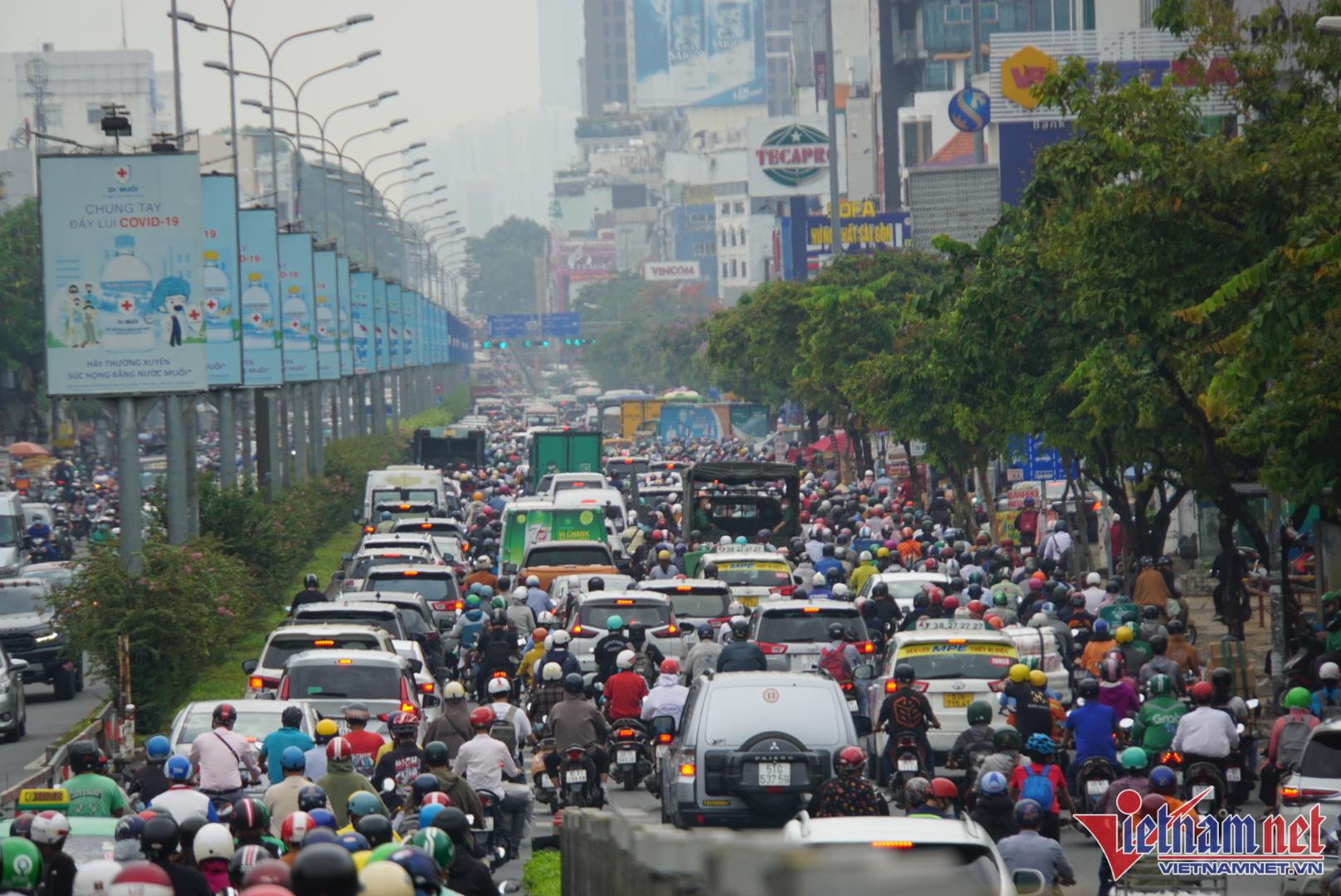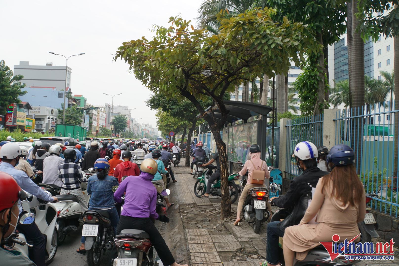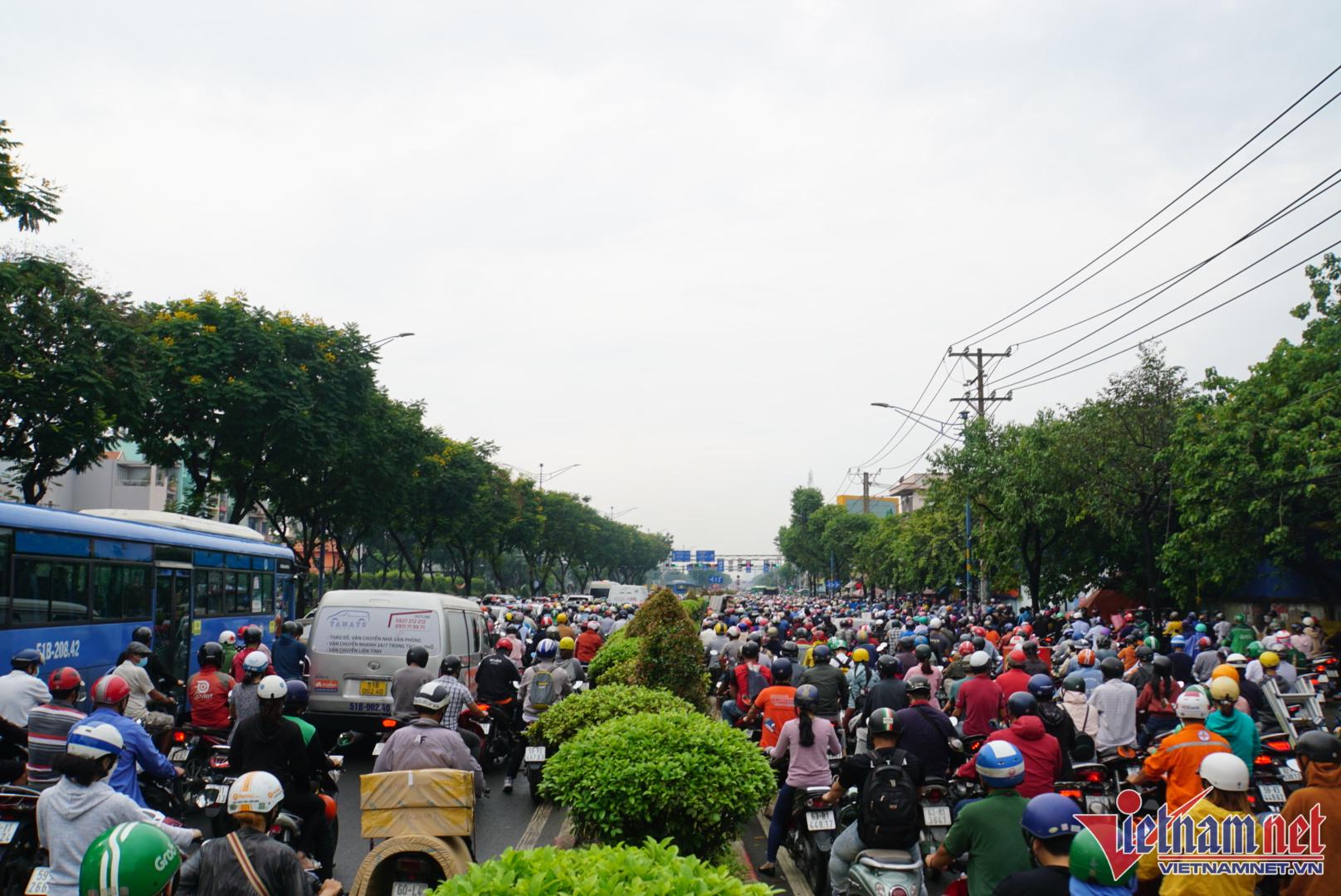 Kẹt nặng nhất là trục đường Trường Chinh đoạn qua địa bàn quận Tân Phú, đoạn đường từ cầu Tham Lương đến mũi tàu Cộng Hòa. Hàng nghìn phương tiện nối dài phải nhích từng centimet. Tương tự, đường Cộng Hòa từ mũi tàu Cộng Hòa đến khu vực cầu Hoàng Hoa Thám cũng xảy ra cảnh ùn tắc tương tự.